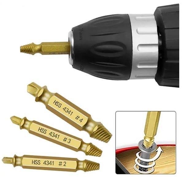 -El juego de Extractor de tornillos dañados funciona con cualquier taladro y cualquier tamaño de tornillo o perno,