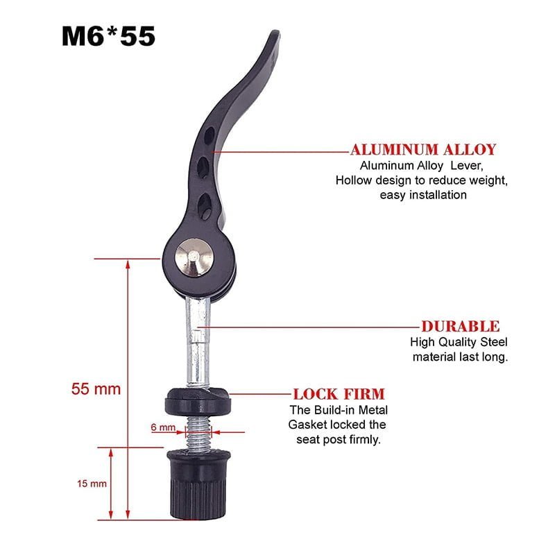 - 【Aplicación】 Tamaño estándar adecuado para todas las bicicletas con ejes huecos.La palanca de liberación rápida de la abrazadera del asiento es un reemplazo simple para el perno de la carpeta del asiento.